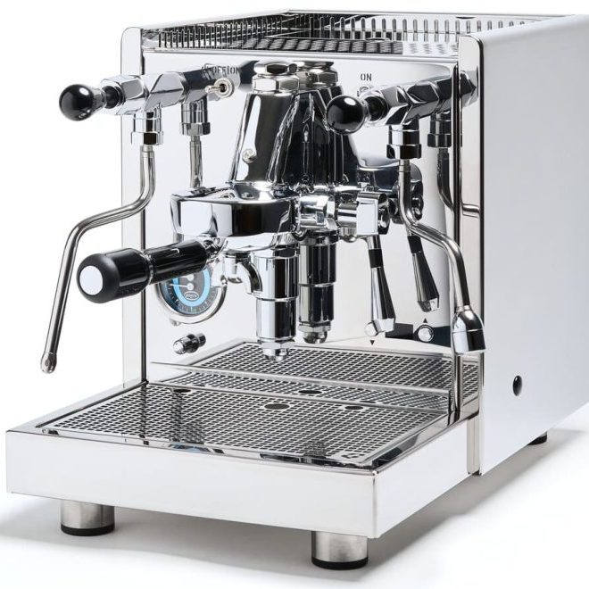 Die Rocket bietet alle Vorteile einer Zweikreismaschine. Nach einer Aufheizzeit von 15 bis 18 Minuten können sehr gute Espresso-Extraktionen erzielt werden. Mit dem Manometer für den Pumpedruck haben Sie den Brühdruck im Blick und entscheiden, ob Sie den richtigen Mahlgrad gewählt haben. Durch die zwei unterschiedlichen Wasserkreisläufe ist der Rocket immer dampfbereit. Sie erzeugt einen feinporigen Milchschaum und ist sehr schnell. Die hochwertige Verarbeitung sieht nicht nur gut aus, sondern macht den Rocket auch zu einem langjährigen Begleiter.
